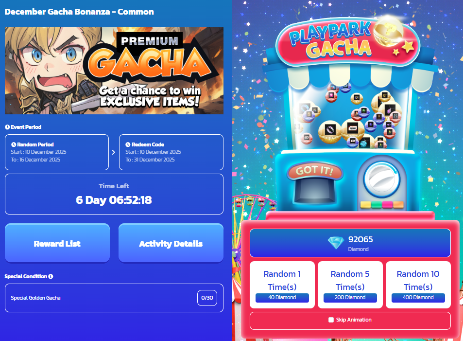 December Gacha Bonanza offers a GOLDEN opportunity for users to get a chance to win an exciting prizes.