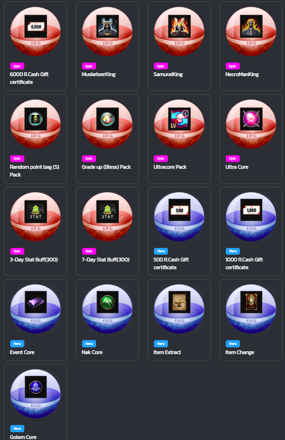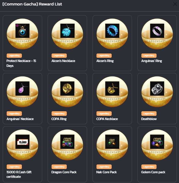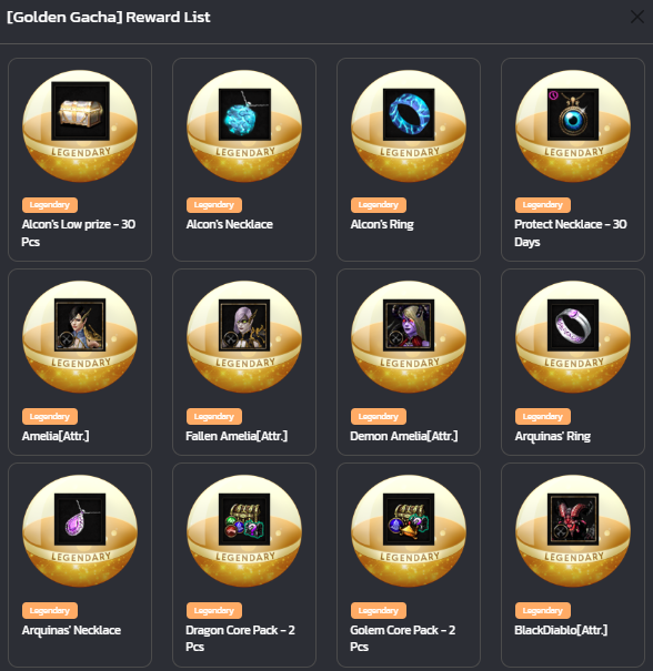 The Golden GaCha have a different but LEGENDARY set of items to be won.